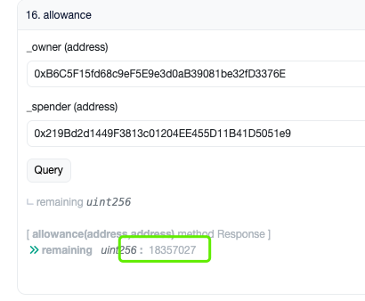 Example: The queried 18357027, and the actual remaining amount is 18.357027 USDT since the data has six decimal places.